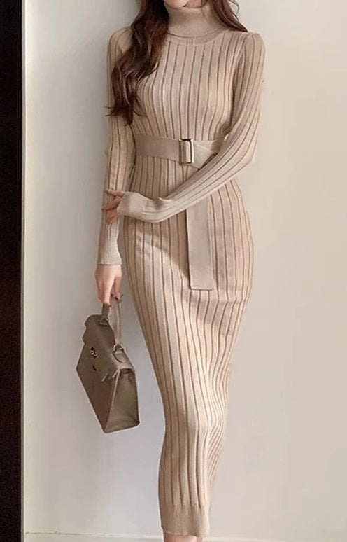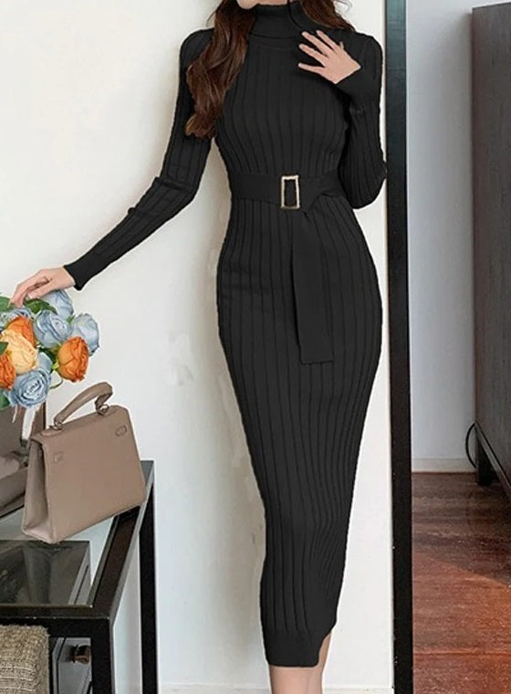 Dona eleganza e sensualità al tuo look con questo abito maglione aderente. Realizzato in morbida maglia calda, presenta un dolcevita raffinato, maniche lunghe e una vestibilità che avvolge la figura valorizzando le curve.